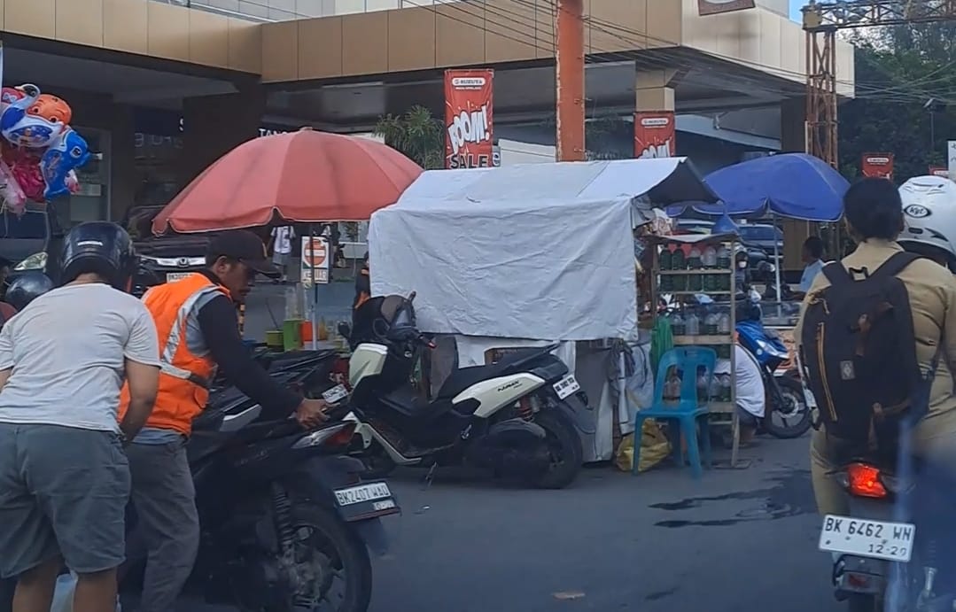 Terlihat pula beberapa petugas parkir yang mengatur kendaraan keluar-masuk, namun kehadiran parkir di badan jalan tetap membuat kondisi tidak ideal bagi kelancaran lalu lintas. Hal ini menimbulkan pertanyaan publik, apakah sistem parkir yang ada sudah melalui kajian teknis dan sesuai dengan Analisis Dampak Lalu Lintas (ANDALALIN).